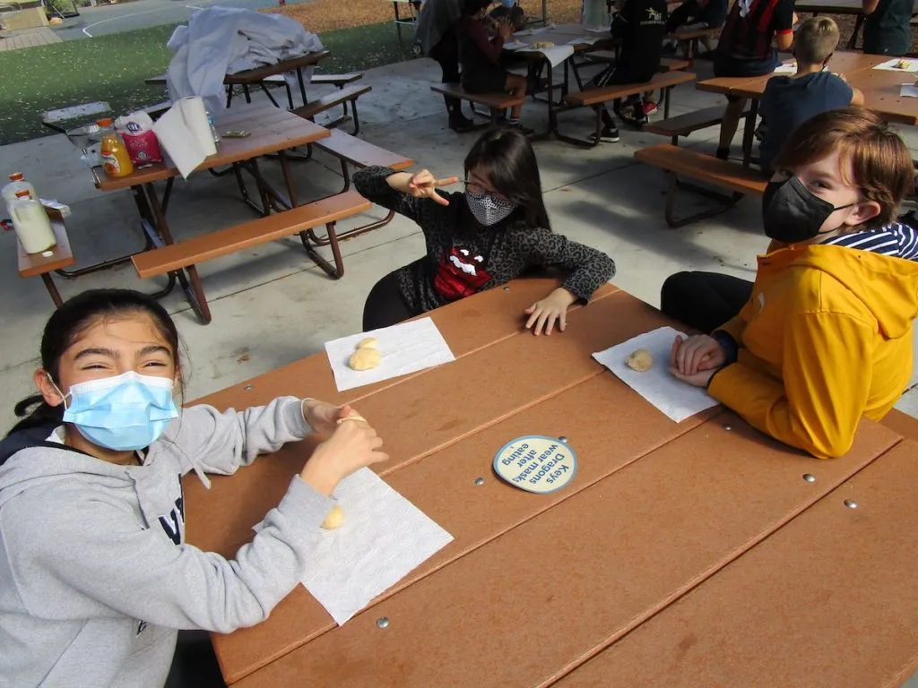 (Photos below) In honor of Día de los Muertos (Day of the Dead), students worked together to decorate our middle school campus Ofrenda during Spanish class. They made pan de muerto and sugar skulls then placed photos of family members on it who had passed. Feliz día de los Muertos!