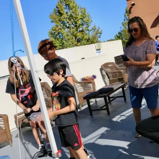 Seventh graders applied principles of physics to create a “cloud in a bottle,” demonstrating how changes in air pressure and temperature cause water vapor to condense. This hands-on experiment reveals the physical forces that shape our weather systems