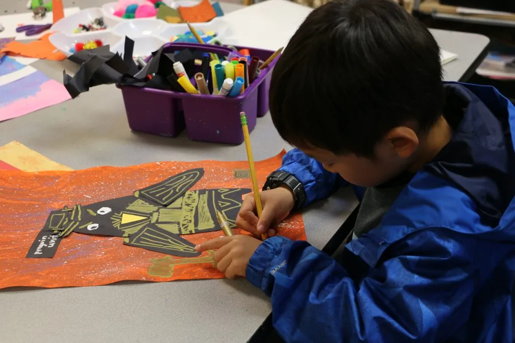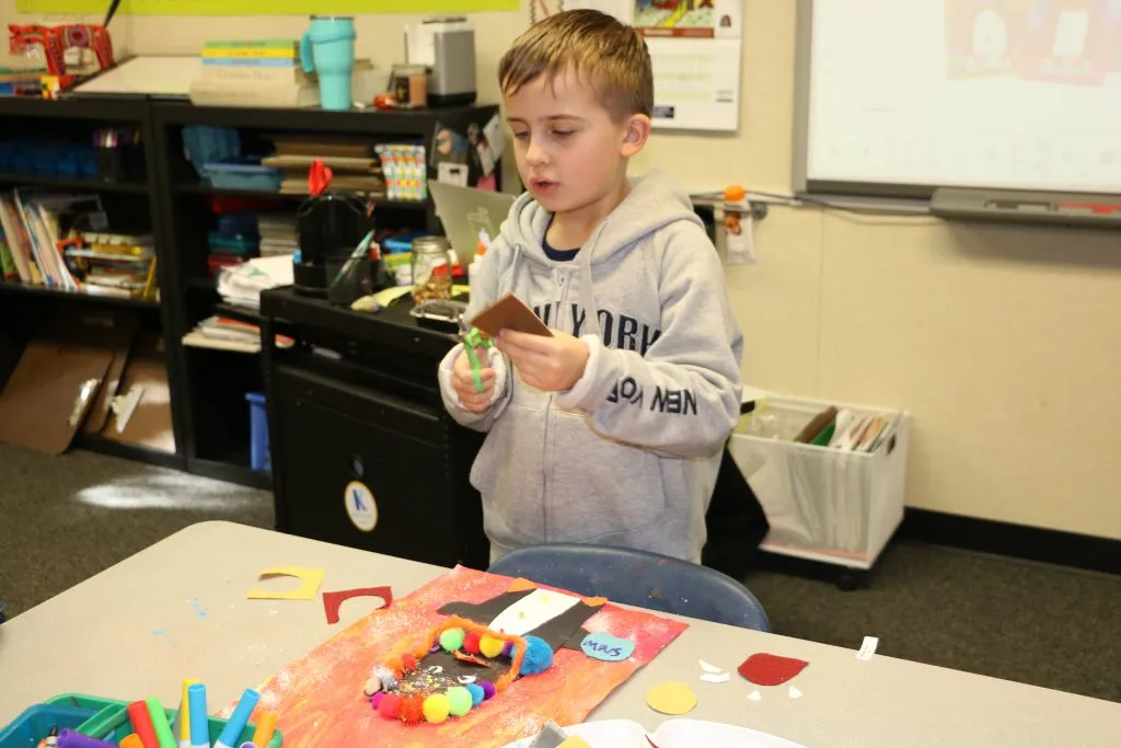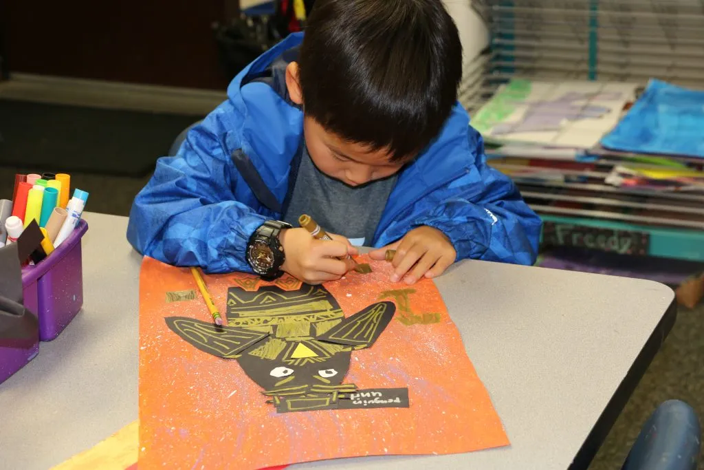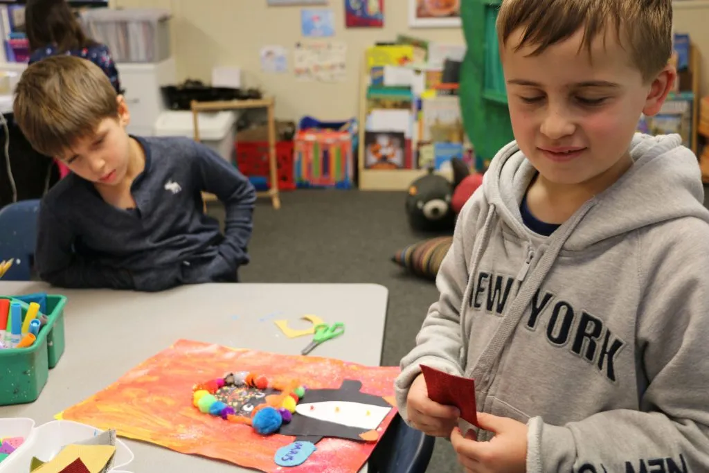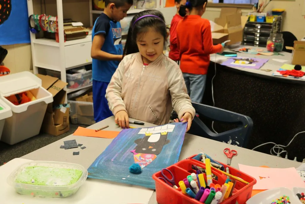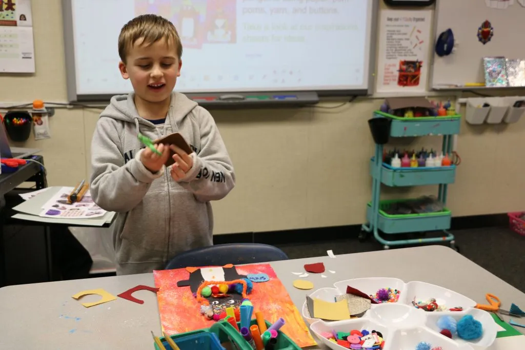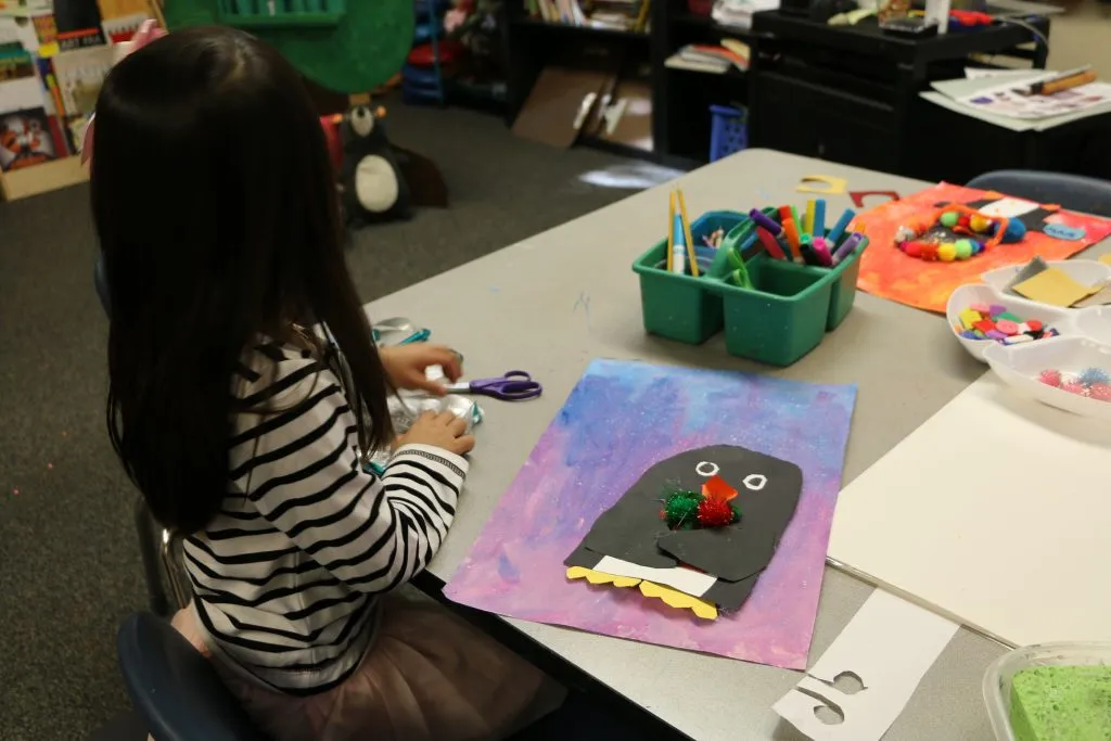 First grade students kicked off the month by designing and constructing unique penguins today in art class.