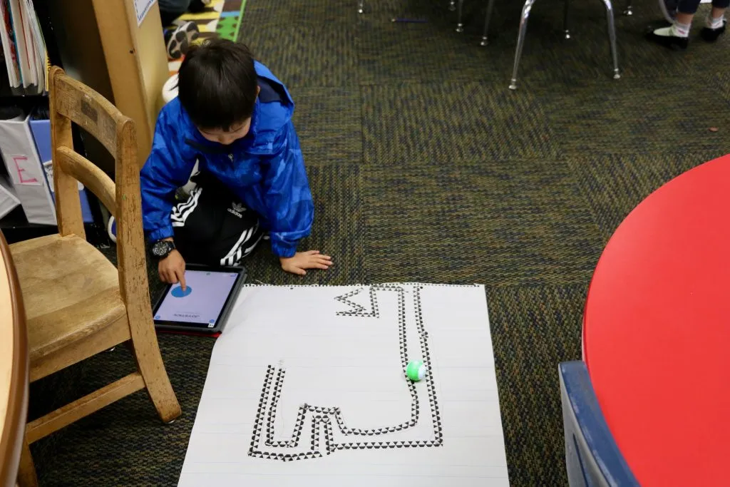 The Hour of Code campaign was initially started as a way to demystify “code” and to broaden participation in the field of computer science. Hour of Code has now become a worldwide effort to celebrate computer science as a part of Computer Science Education Week. This week Mayrin Bunyagidj, Keys Lower School Technology Integrationist, designed projects for grades K to 4 meant to integrate computer science with other lessons within each grade’s curriculum. First grade students, in conjunction with their unit on the post office, used mini robots called Sparrows to help map out their “mail routes” around Keys Lower School campus. Students worked together to design their mail routes, and then carefully maneuvered the Sparrow through the maps they created using a variety of control systems on their iPad. Who knows, years from now the Keys First Grade Post Office may be run by robots entirely!